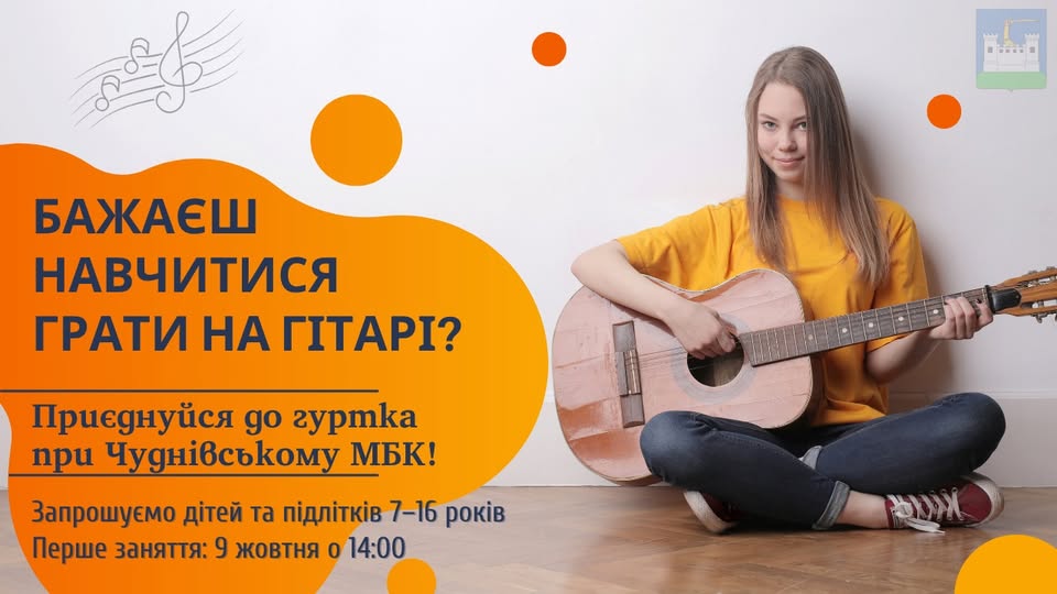 При Чуднівському міському будинку культури розпочинає роботу гурток гри на гітарі. Це чудова нагода розвинути свої музичні здібності, навчитися відчувати ритм і мелодію, а також знайти нових друзів, які поділяють твоє захоплення музикою.
