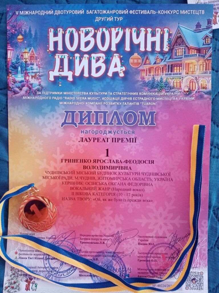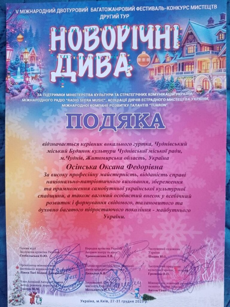 Вихованці Чуднівського міського будинку культури здобули перемоги у V-му Міжнародному двотуровому багатожанровому фестивалі-конкурсі мистецтв «Новорічні дива».