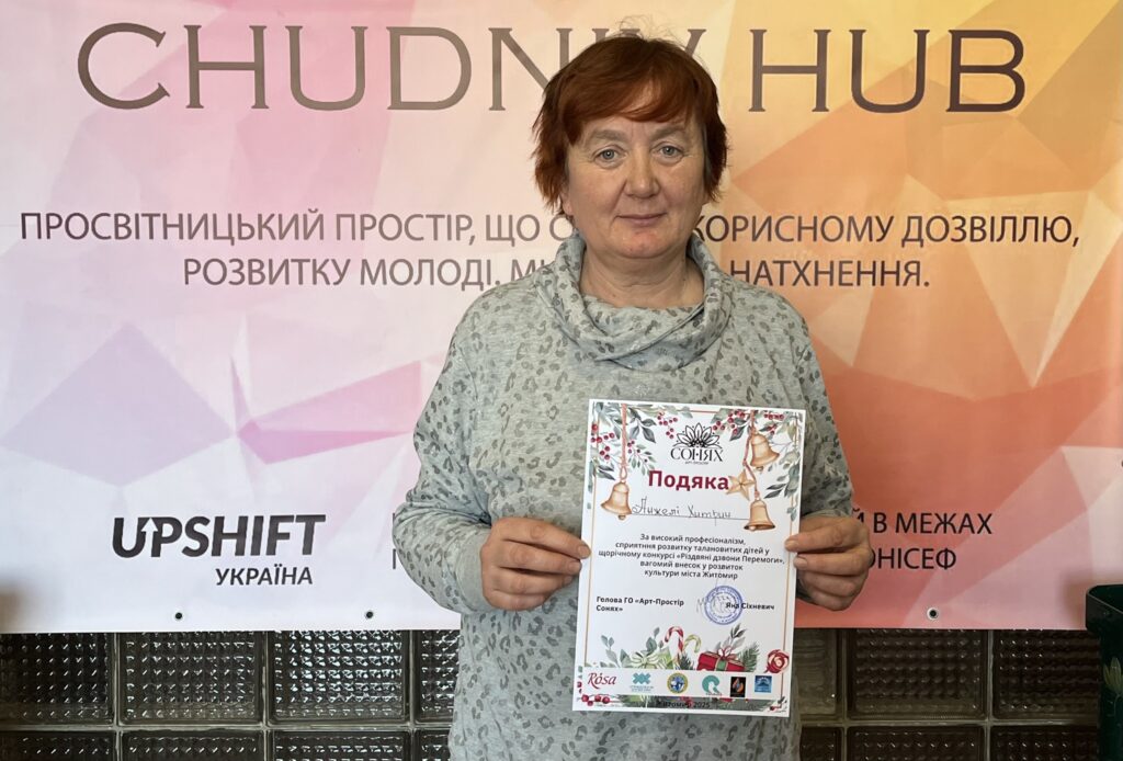 110Вихованці вокального гуртка Чуднівського міського будинку культури та гуртка народної творчості взяли участь у Всеукраїнському двотуровому багатожанровому фестивалі-конкурсі мистецтв «Різдвяна Україна», а також у Всеукраїнському конкурсі дитячого малюнка «Різдвяні Дзвони Перемоги».