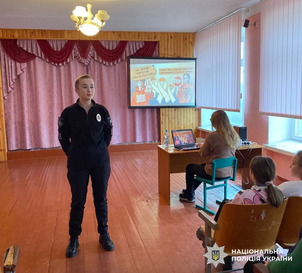 Упродовж тижня правоохоронці Житомирського райуправління №1 та відділення поліції №2 (м. Чуднів) провели низку превентивних бесід з учнями місцевих навчальних закладів. Заходи відбувалися в межах Всеукраїнської акції «16 днів проти насильства».