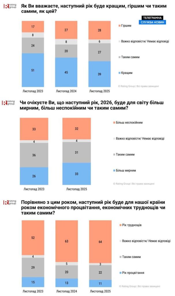 Частка “песимістів” майже не змінилася. Кожен четвертий респондент вважає, що 2026 рік буде гіршим за минулий.